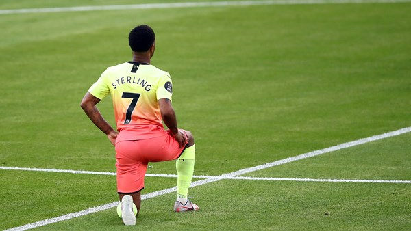 เสื้อของผู้เล่นในพรีเมียร์ลีกเบื่อสโลแกนแทนชื่อของพวกเขาในการแข่งขันรอบแรกของการแข่งขันบนเครื่องบินหลังจากการแข่งขันเริ่มต้นใหม่ท่ามกลางการแพร่ระบาดของโคโรนาไวรัส ผู้เล่นและทีมงานยังแสดงให้เห็นถึงการสนับสนุนของพวกเขาสำหรับสาเหตุโดยการเข่าก่อนที่จะเตะออก