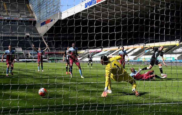 ที่เหลือผ่าน Tomas Soucek แต่กลับถูกตรึงอีกครั้งคราวนี้ภายในไม่กี่วินาทีเมื่อ Jonjo Shelvey ยิงเข้าไปที่มุมด้านล่างหลังจากแลกเปลี่ยนกับ Dwight Gayle ท่ามกลางการปกป้องที่น่าสนใจจากผู้เข้าชมMoyes กล่าวว่า:“ ฉันรู้สึกไม่สบายเพียงเพราะพวกเราทำงานหนักมากเพื่อให้ได้เป้าหมาย